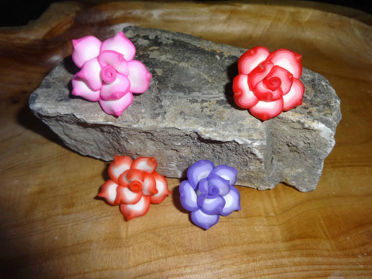 2 Polymer-Blüten zum Einklöppel, Annähen oder Ankleben - Durchmesser ca: 25 mm