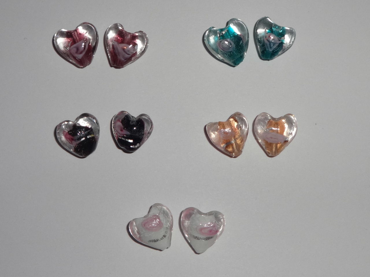 2 Stück Silberfolien-Glasperlen Herzform in verschiedenen Farben,