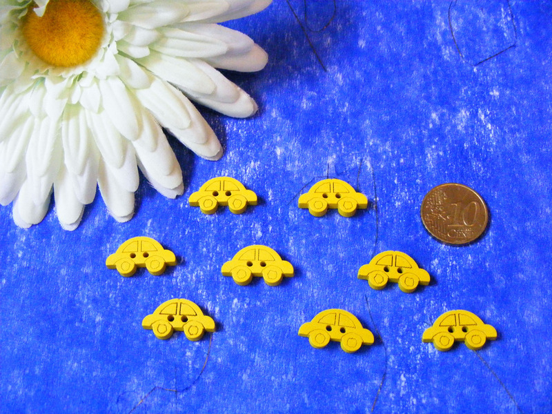 Acht wunderschöne Holzknöpfe in der Form kleiner Autos