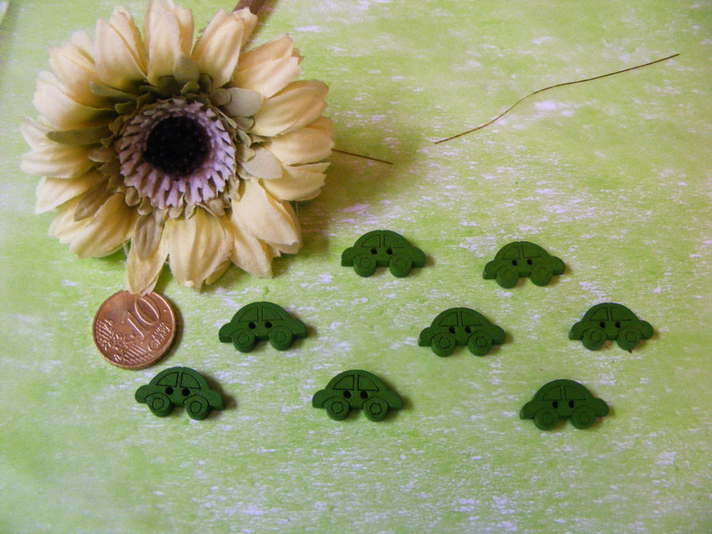 Acht wunderschöne Holzknöpfe in der Form kleiner Autos