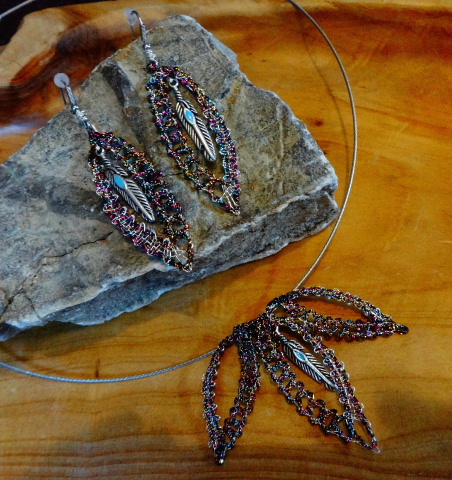Klöppelbrief für ein Paar Ohrringe und einen passenden Anhänger für eine Kette.