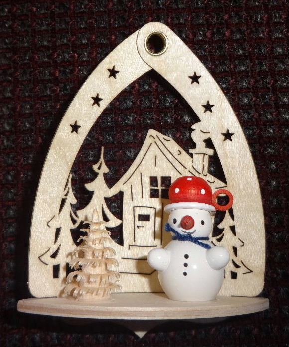aus edlem Ahornfurnier gefertigt, mit gedechselten Figuren aus dem Erzgebirge, ideal als Christbaumdekoration, Größe: 7 x 9 cm. Verpackt in einer Geschenkschachtel mit Klarsichtfenster.