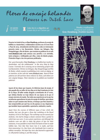 Diese sehr schöne spanische Zeitschrift mit vielen lehreichen Inhalten. Alle Texte sind in spanisch und englich verfasst. Zu den Klöppelbriefen gibt es viele Zeichnungen, so dass man dennoch alles gut verstehen und nacharbeiten kann. Ein wirklich tolles Heft mit vielen tollen Ideen zum Nachmachen.