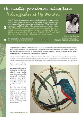 Eine sehr schöne spanische Zeitschrift mit vielen lehreichen Inhalten. Alle Texte sind in spanisch und englich verfasst. Zu den Klöppelbriefen gibt es viele Zeichnungen, so dass man dennoch alles gut verstehen und nacharbeiten kann. Ein wirklich tolles Heft mit vielen tollen Ideen zum Nachmachen.
