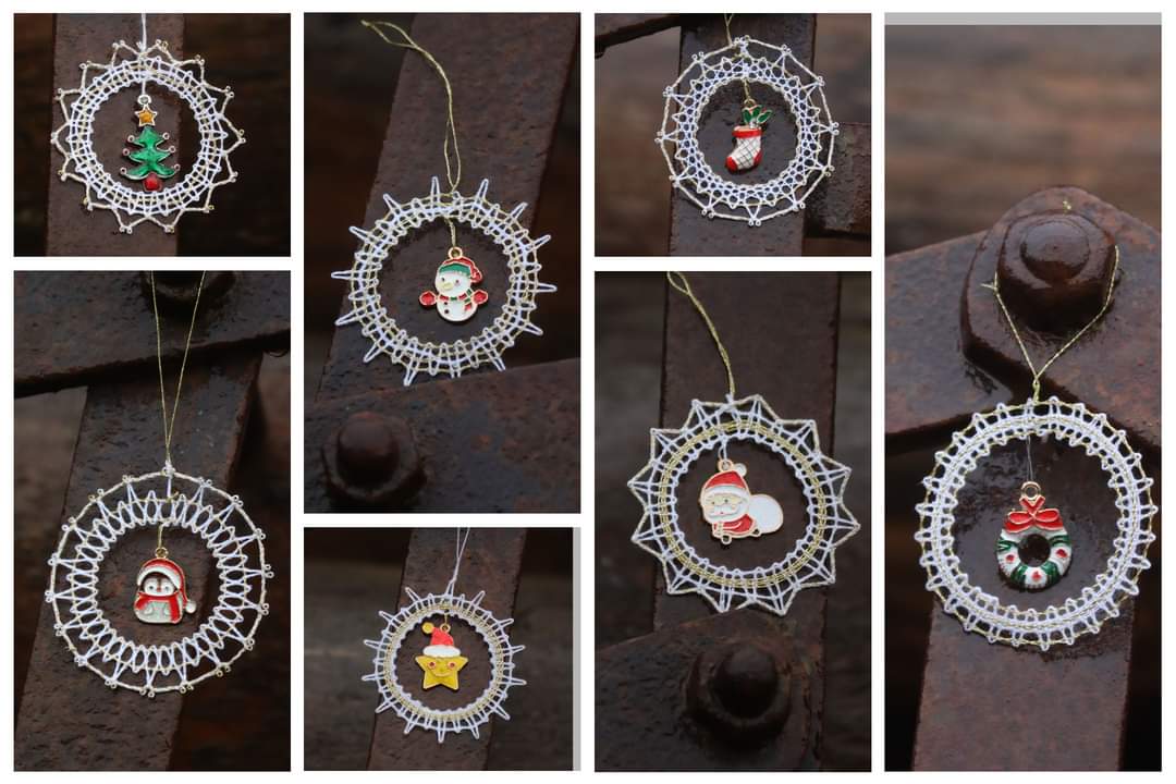 10 kleine bunt emaillierte Metallanhänger für weihnachtlichen Baumschmuck etc. unterschiedliche Größen ca. 2-3 cm